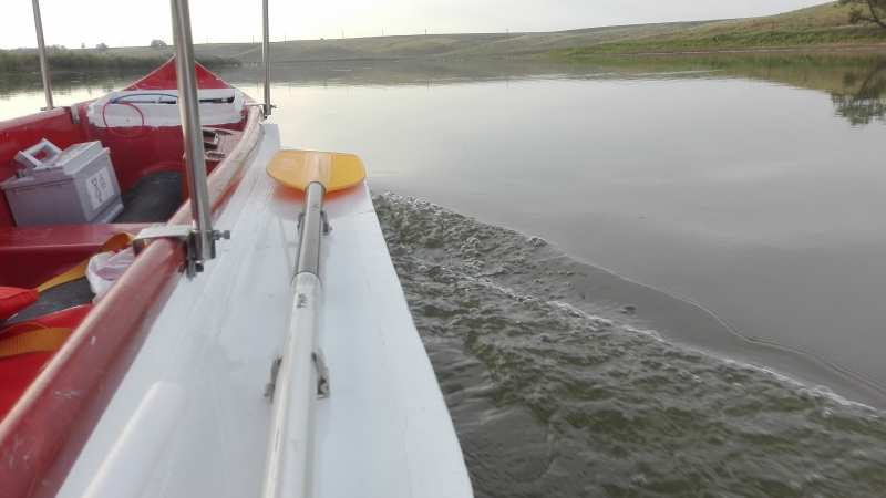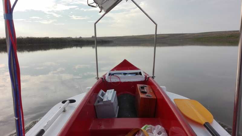Verific prognoza meteo cu o zi inante; era perfect  soare, fara nori,  34-36 grade, asa ca ma pun pe planuit, incarcat acumulator si impachetat. O iau din loc dimineata pe la 5:30, impreuna cu un bun tovaras care urma sa-si consume ziua la pescuit langa barajul de la Gurbanesti. La 8 sunt pe balta cu acumulatorul de 105 Ah al barcii si cel al masinii de 70 Ah (imi zic sa fiu pregatit), 6 litri de apa minerala, mancare, si trusa de scule cu cele trebuincioase; imi fac cruce si ma pun pe treaba. Dimineata foarte frumoasa, confortabila din punct de vedere al temperaturii, lacul Cocorilor foarte pitoresc, pasari multe, atelajul se unduia lin pe apa si ceea ce imi placea cel mai mult era linistea care ma inconjura, vacarmul cotidian al orasului ramasese undeva pierdut in urma asemeni siajului care ma urma credincios.